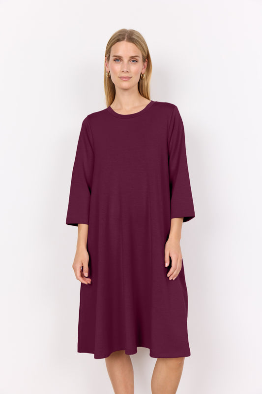 SOYA CONCEPT BANU 155 Burgundy Relaxed A-Line Dress with Pockets