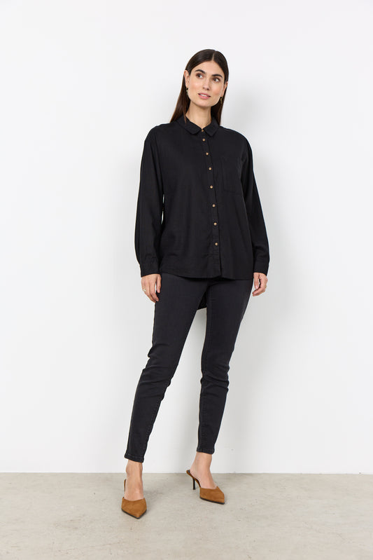 SOYA CONCEPT Ina Black Linen Blend Button Down Blouse