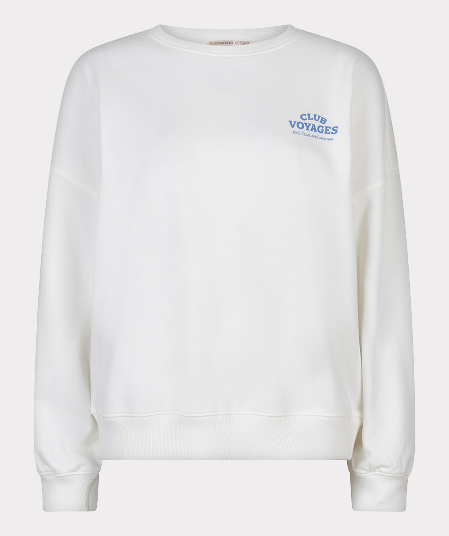 ESQUALO CITIES White & Blue Graphic Crewneck Sweater