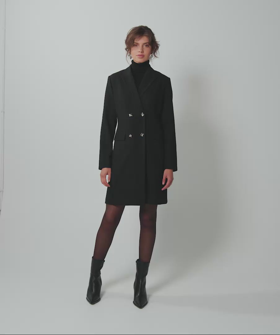 The ESQUALO ESTELLE Blazer Dress combines a sophisticated double-breasted silhouette with superior fabric quality, made from 75% polyester, 20% viscose, and 5% spandex. Its tailored construction ensures a flattering fit, while the slight stretch enhances comfort and ease of movement. Perfect for any stylish occasion, this blazer dress delivers timeless elegance with exceptional craftsmanship.