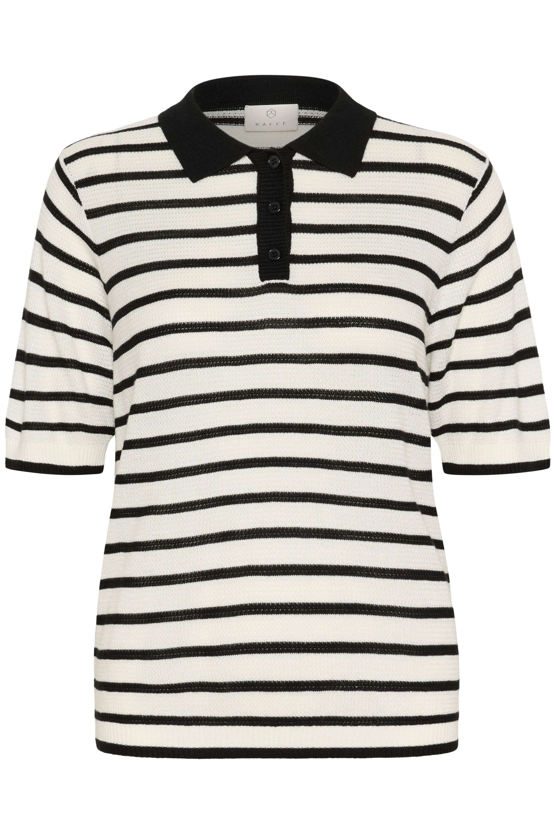 KAFFE LHENIA Two-Tone Cream & Black Knit Polo