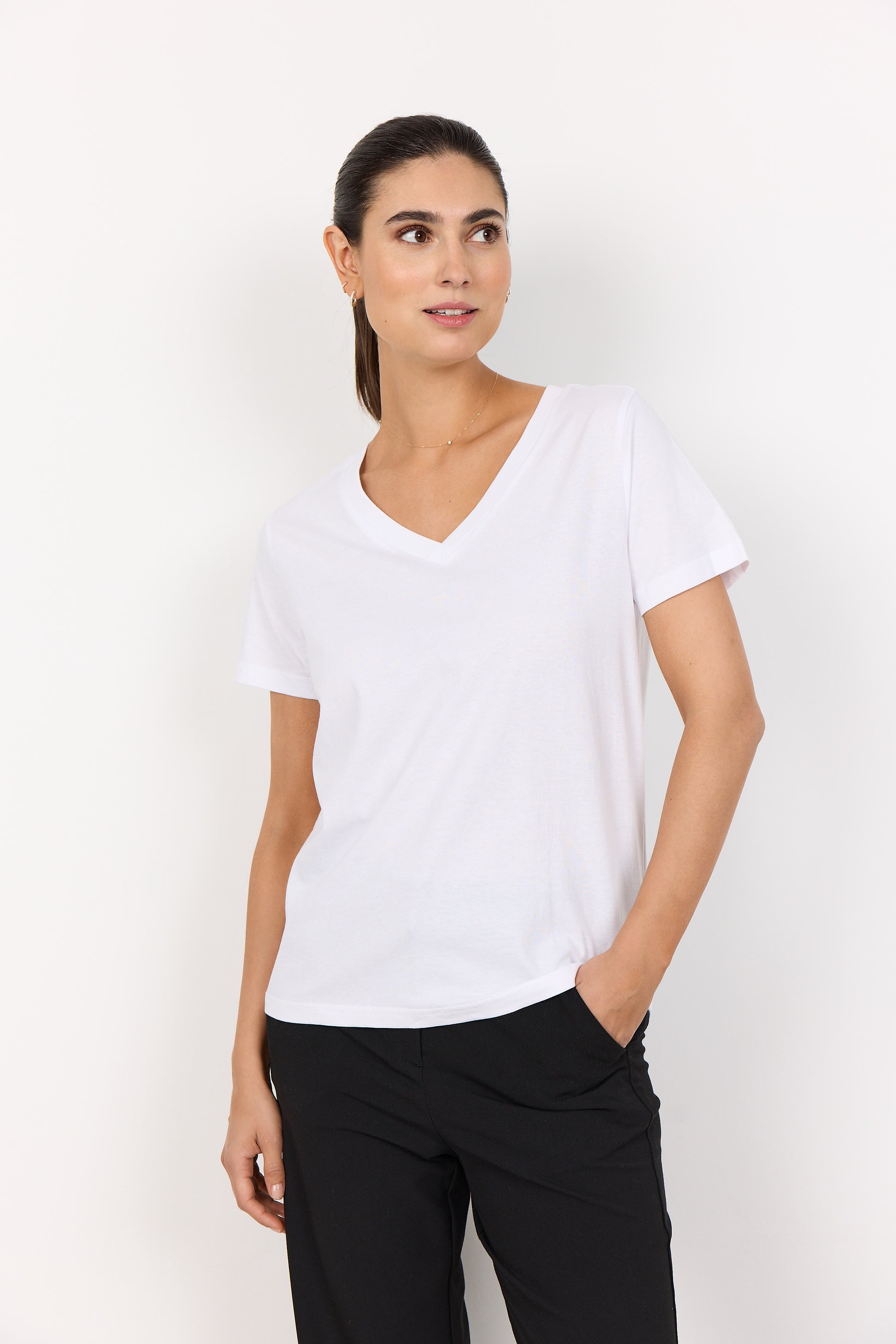 SOYA CONCEPT Derby Crisp White 100% Organic Cotton V Neck T-Shirt