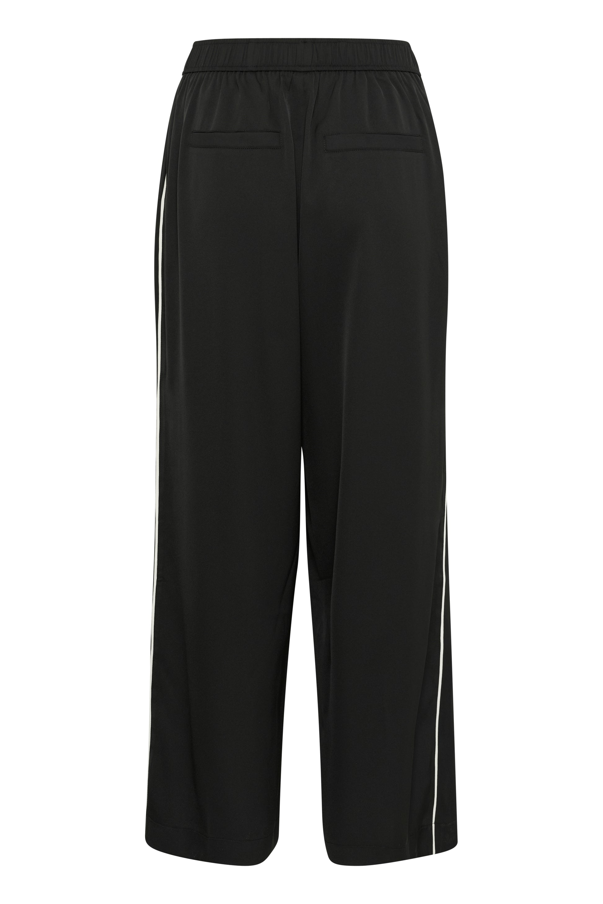 The sleek contrast piping along the leg adds a touch of structure and modern detail without being loud. The elastic waistband keeps things comfortable, while the wide-leg cut creates a soft, elongated line